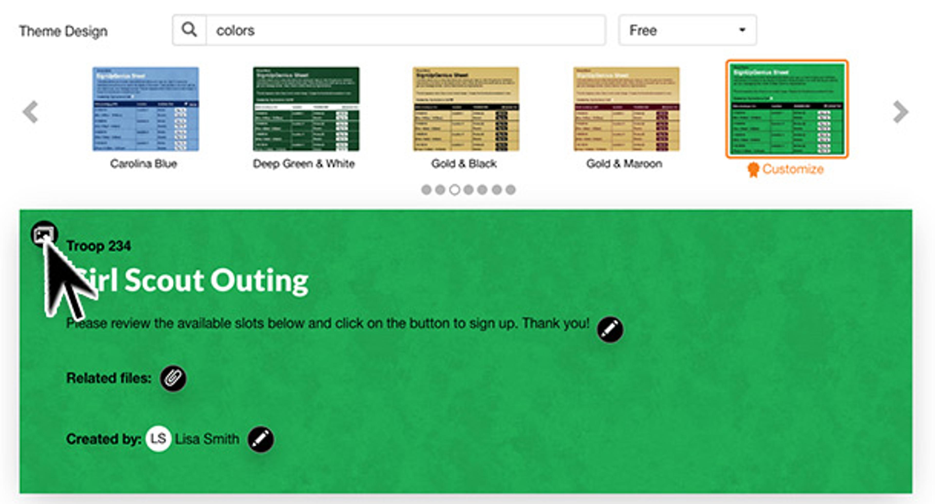 Sign Up creators have the option to customize a sign up by adding a custom image or logo to one of our sign up themes.