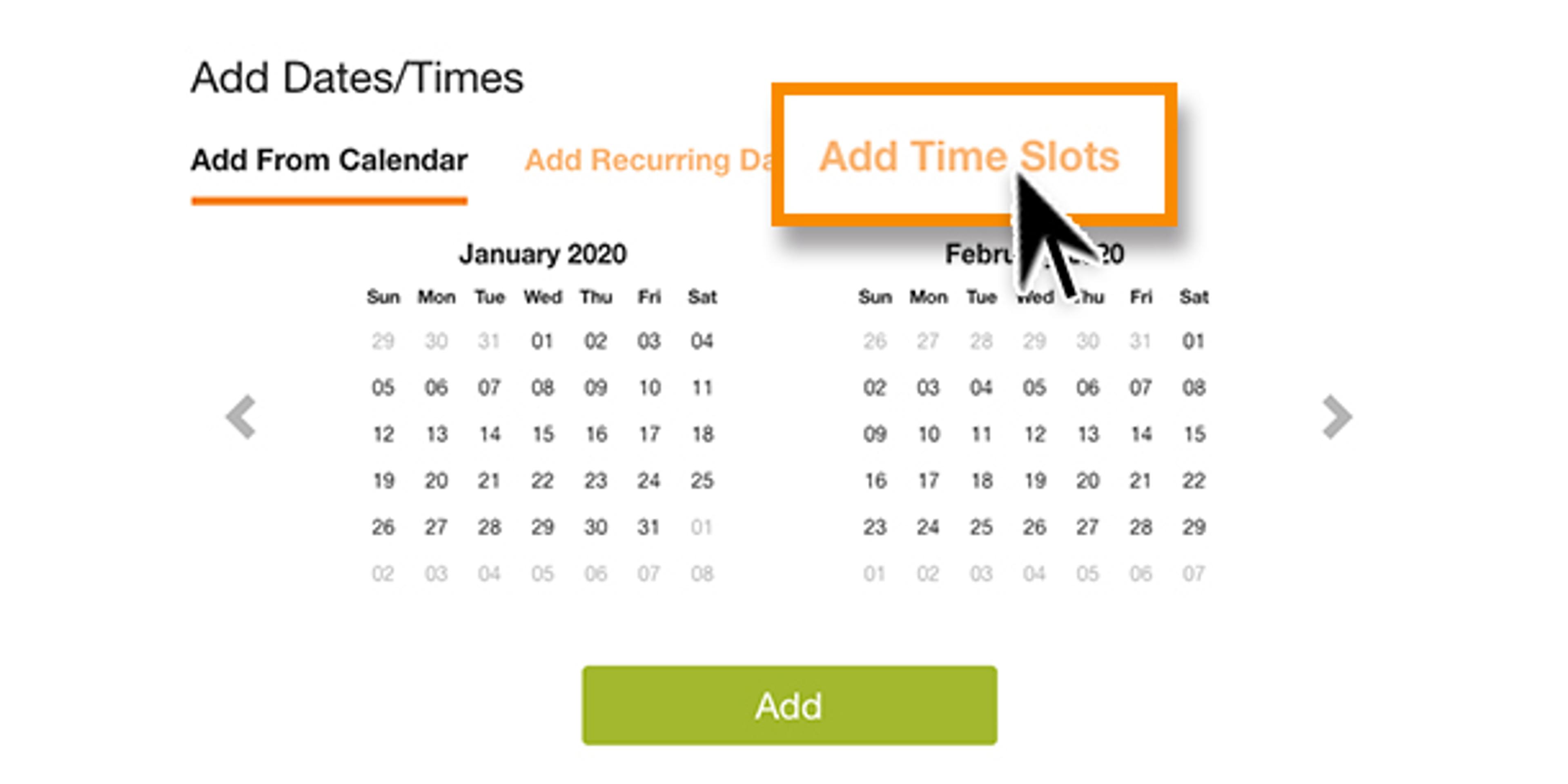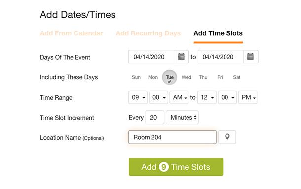 We offer a time-saving feature that allows you to quickly populate time slots if you are creating a sign up with regular appointment times or shifts.