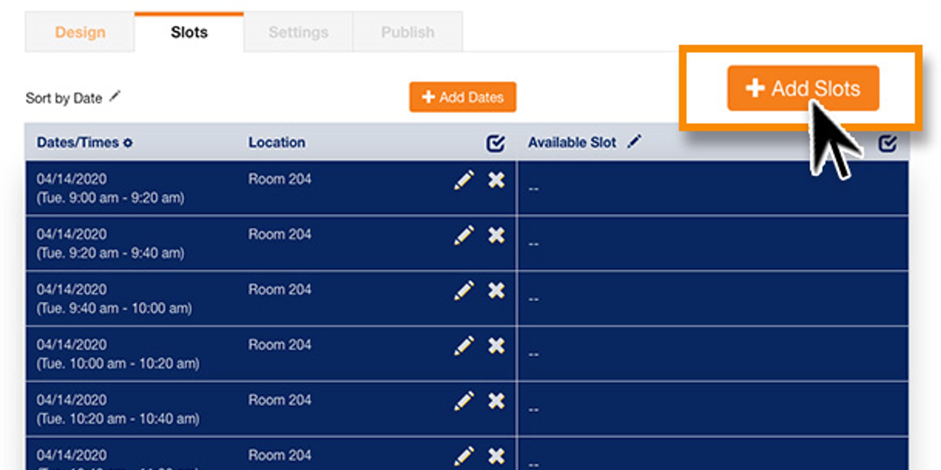 Next, you will need to assign a slot to each of the dates/times you have created.